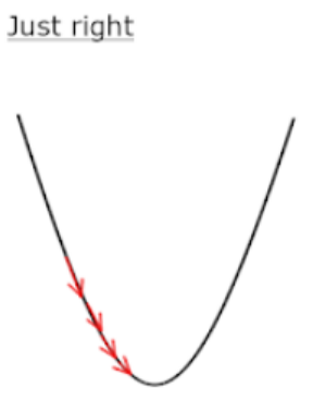 따라서 우리는 다음 그림처럼 효율적인 학습이 이루어질 수 있도록 적당한 학습률을 정해주는 것이 중요하다.