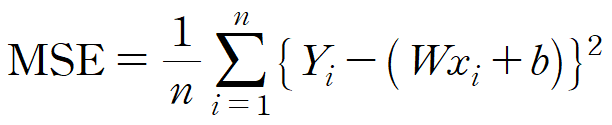 다음으로 MSE 구하는 코드를 구현해보자. MSE를 구하는 공식은 다음과 같다고 했다.