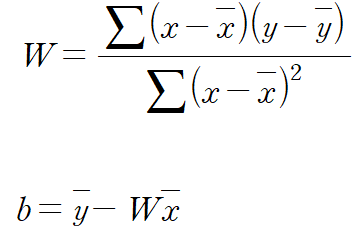 W = (np.sum((x - bar_x)*(y - bar_y) / np.sum((x - bar_x)**2)))