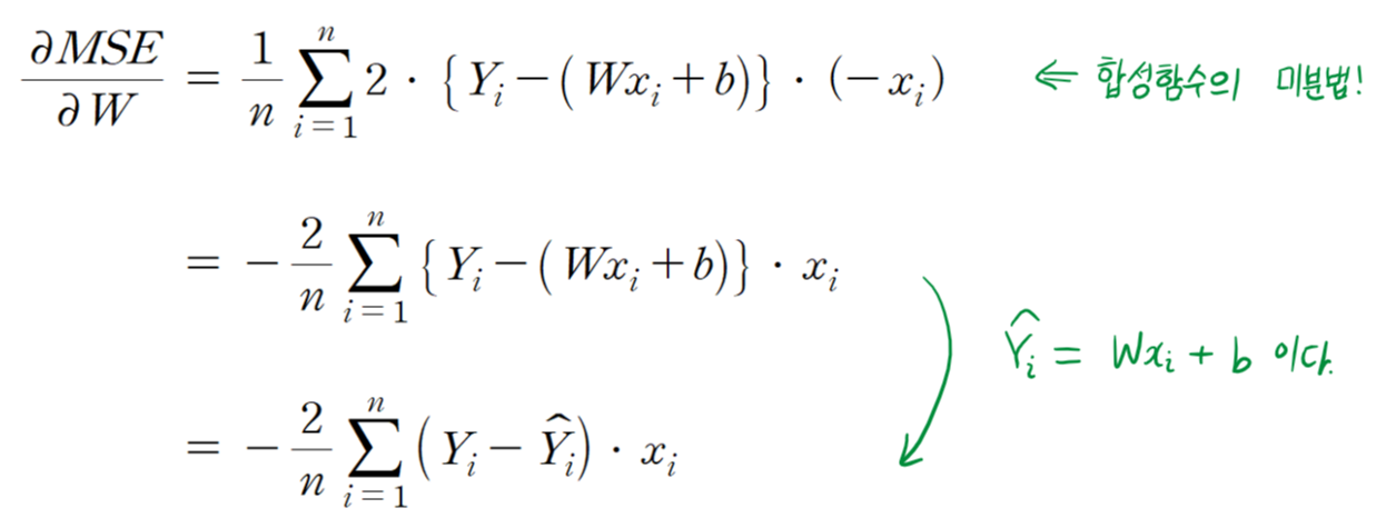 diff_W = -2/n * np.sum((y - y_pred)*x)