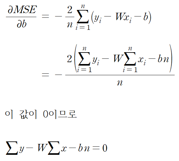 우리는 이 두 값이 모두 0이 되어야 MSE가 최소가 된다는 것을 알고 있다. 이를 동시에 0으로 만드는 것을 공식화 해볼 수 있을 것 같다. 먼저